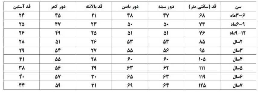 برای اطمینان بیشتر، اندازههای لباسهای فعلی فرزندتون رو با جدول مقایسه کنید.